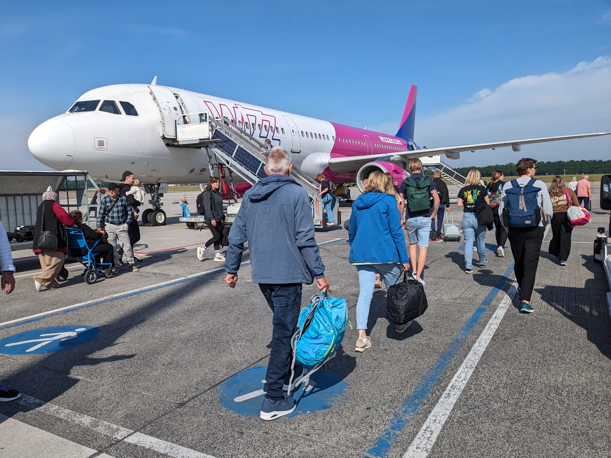 Dinsdagochtend haalden H&A zoals afgesproken om 5.30u op in Amsterdam. We reden naar de P&R in Best, waar we precies op tijd waren voor de bus die ons in 20 minuten naar Eindhoven airport bracht. Daar hadden we zelfs nog tijd om lekkere broodjes van Alexandra buiten in het zonnetje te eten voordat we onze spullen konden inchecken.