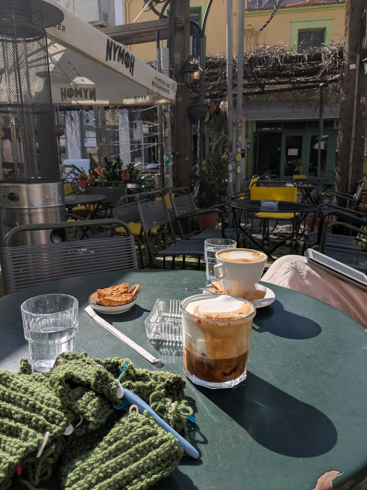 Woensdag hadden we de wekelijkse meetings, eerst met het medische team en daarna met het gehele team. We bespraken organisatorische mededelingen en patiënten waar we ons zorgen om maken. Iemand had heeerlijke koekjes gebakken, ik zat lekker te haken ondertussen, en het was een gezellige ochtend. Voor de lunch ging ik met Lizzie op zoek naar een restaurantje met salade. We vonden een schattig terrasje in de zon met helaas geen salade, maar wel goede koffie en broodjes, en we bleven er lekker lang hangen. Het is de laatste dagen echt lekker weer! Om 17u stonden we weer klaar voor de dienst. Lizzie zou eigenlijk donderdag pas ingewerkt worden, maar ze wilde graag vandaag al mee dus ik mocht haar inwerken. Het begon erg traag, maar na een tijdje was het behoorlijk druk. Onder andere doordat we iemand met documenten in het Grieks hadden die vertaald moesten worden, iemand waarbij we via twee tolken moesten vertalen (heel ingewikkeld), dan weer iets overleggen met Nico, dan weer meekijken bij de verpleegkundige die een kindje had gezien… Het was wel heel fijn om samen met Lizzie te doen, zij deed de verslaglegging dus dat was lekker efficiënt. We waren wel weer rond 22u klaar en dat kwam mooi uit, want we wilden even kijken bij een salsa-avond. Brandon en Barbara kunnen salsa dansen, dat wilden we wel zien. We werden afgezet in het centrum, wel letten we dan op dat we geen BRF-kleding dragen. Het was een hele gezellige avond, zo mooi als mensen goed kunnen dansen! Tot Lizzie om twaalf uur zei dat ze naar huis ging, was ik vergeten dat ik de volgende ochtend een telefonische afspraak met de VvAA had, oeps.