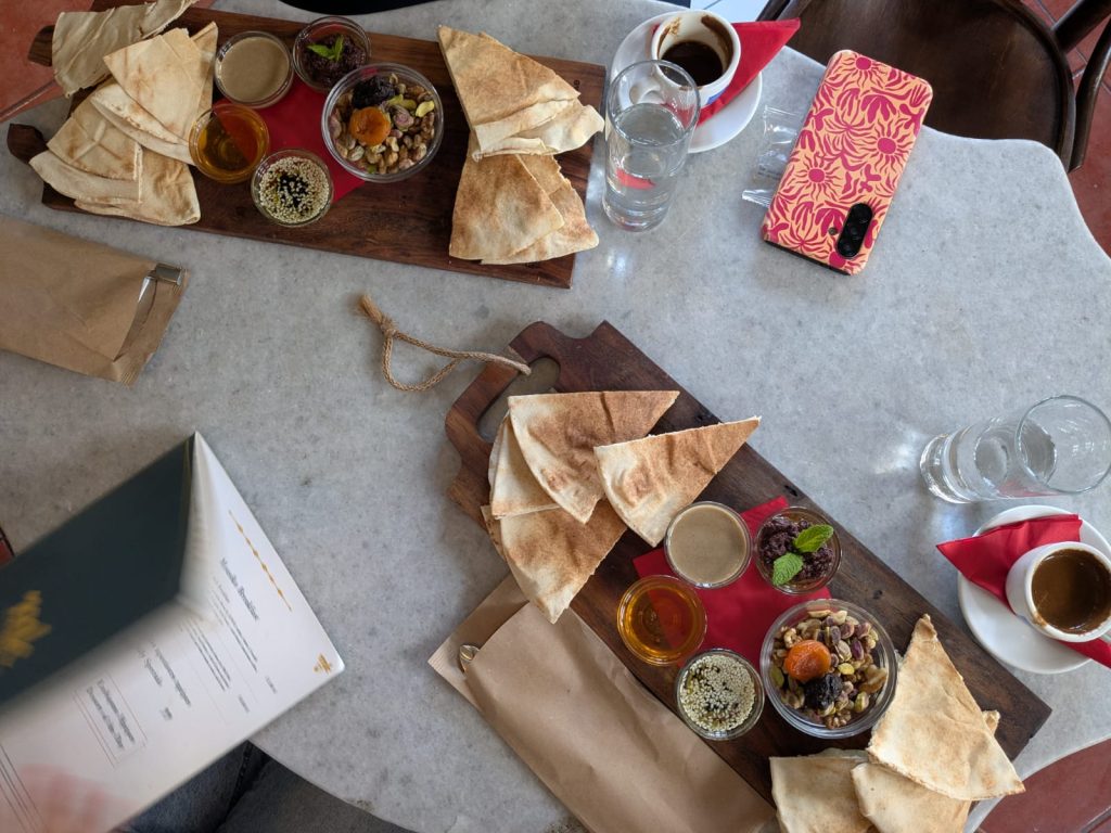 Ja ze hebben hier ook leuke lokale specialiteiten, pistache croissants bijvoorbeeld, en tahini-noten-pasta’s (ook met oa pistache, of cacao) als een soort pindakaas!
